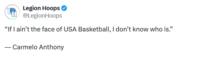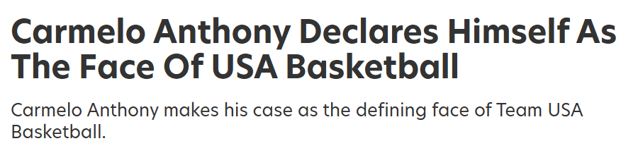在入选名人堂前的采访中,安东尼的一句话霸气十足却也合情合理——“如果说我不是美国男篮的门面,那我真不知道谁是。”