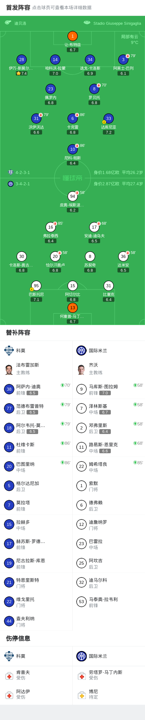 北京时间3月4日意大利杯 半决赛首回合,科莫对阵国际米兰。上半场尼科-帕斯、沃伊沃达造险,下半场达米安中柱,巴列失良机。最终比分科莫 0-0 国际米兰。
